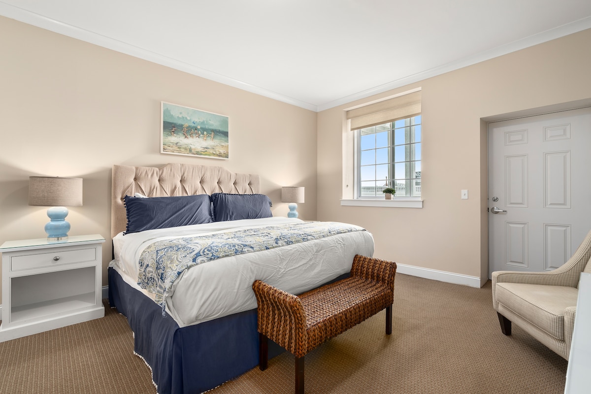 The Harbor Crest Inn, located one half mile from our Main Inn, features luxury guest rooms that have been revitalized. This listing is for a 1st floor guestroom with wide doorways and a standard tub/shower in the bathroom. Guests of Harbor Crest can enjoy the many indoor and outdoor common areas. The 1730 Harbor Crest Inn is our only Inn that is dog friendly. Please note we do not offer elevators in any of our buildings.