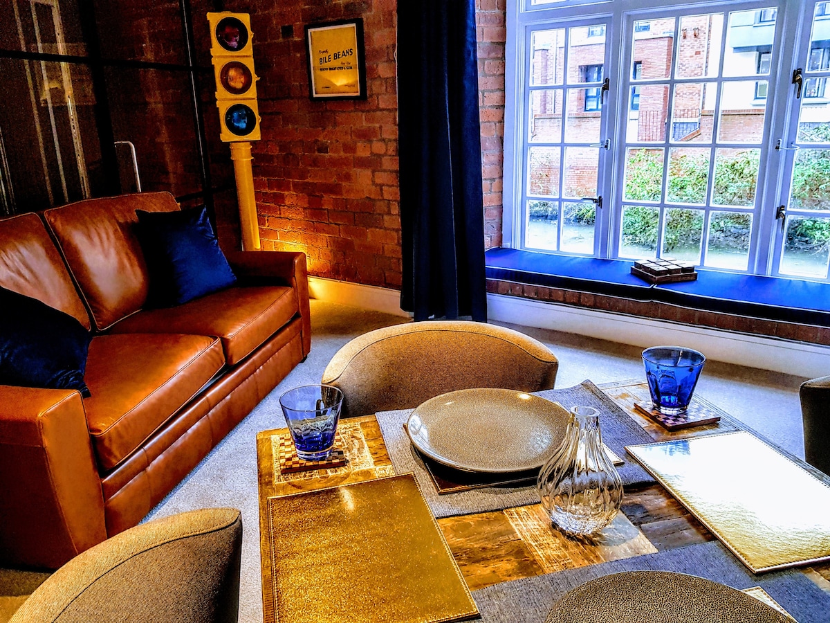 Enjoy our stylish 1-bed ground floor New York 'loft' style space. Directly on the river and one of only a handful of apartments like this in the city. Watch the water flow by your window seat, so close you’ll want to reach out and dabble! York’s most historic industrial building (1864), so peaceful yet 5 mins from city centre. Elegant mix of cool & comfort, original 19th-century brickwork. High spec includes QLED TV, king-size bed & modern quartz worktop kitchen. Privately owned/operated.