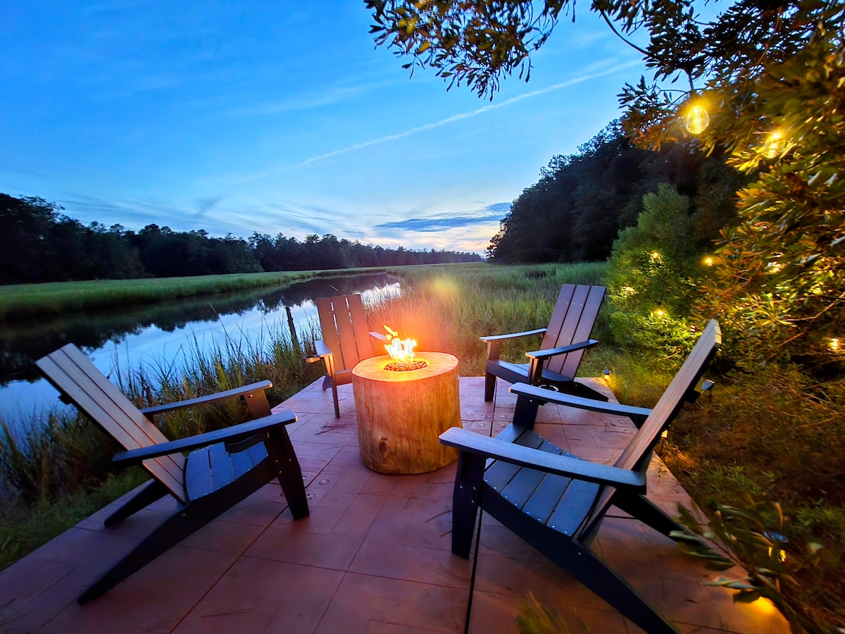 - Waterfront retreat on 10 wooded acres above Bland Creek - Immaculately clean, frequently described as spotless and pristine - Private screened-in porch with peaceful creek and marsh views - Kayaks, a floating dock, fishing, firepits, and nature right outside your door - Well-stocked kitchen plus full-size washer and dryer - Thoughtful hosting with local recommendations, guidebook, and fresh cookies - Peaceful setting just minutes from downtown Gloucester and 45 minutes from Williamsburg