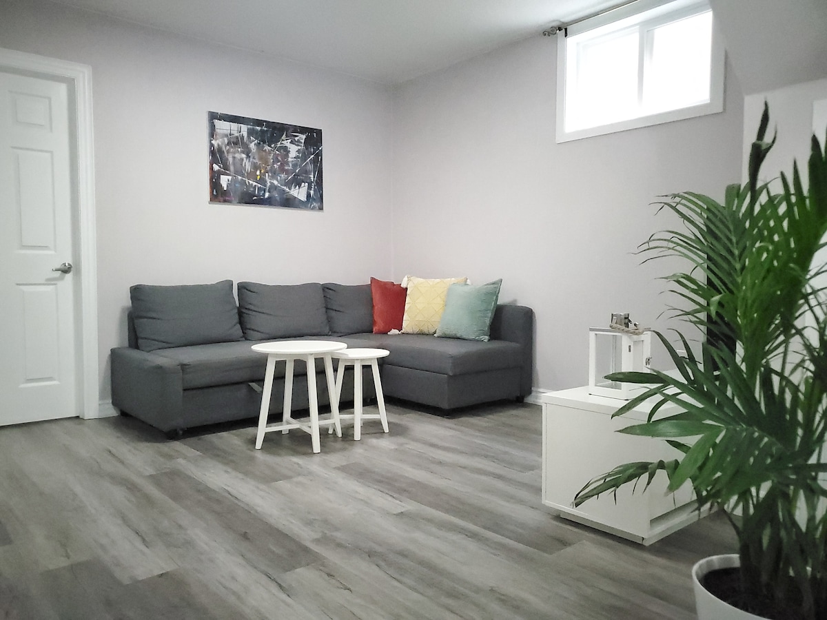 明亮愉悦的全地下室套房,步行即可抵达地铁站