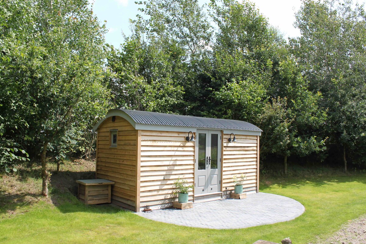 Luxury Shepherds Hut, The Moorhen by the lake.