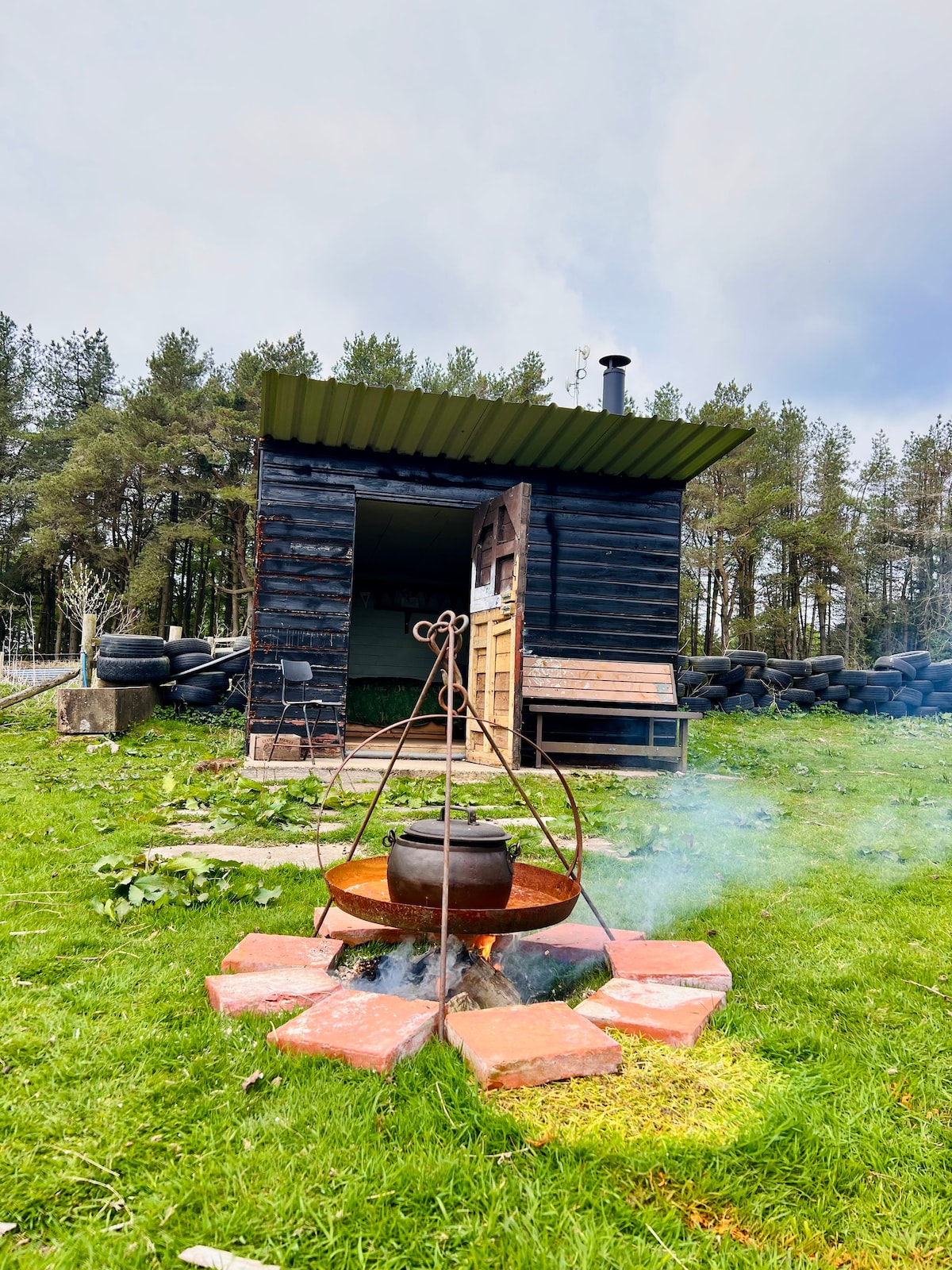 DIY shed in the middle of the woods.