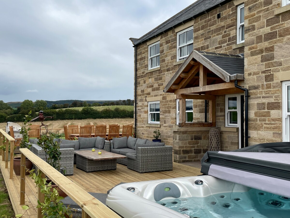 Our Luxury, Spacious, 6 Bed Contemporary Farmhouse with Swimming Pool (summer), Hot tub, Huge Outdoor Living Space sits on the edge of the North Yorkshire Moors. We welcome pets, Dogs, Cats, even Horses and Ponies! Cosy living spaces, great for entertaining and family gatherings. Amazing walks, cycling, and walks. A favorite for Family Birthday Parties. Great Local Dog Friendly Pub. Loads of Ace Restaurants. Very quite and peaceful. Things to do all year around.