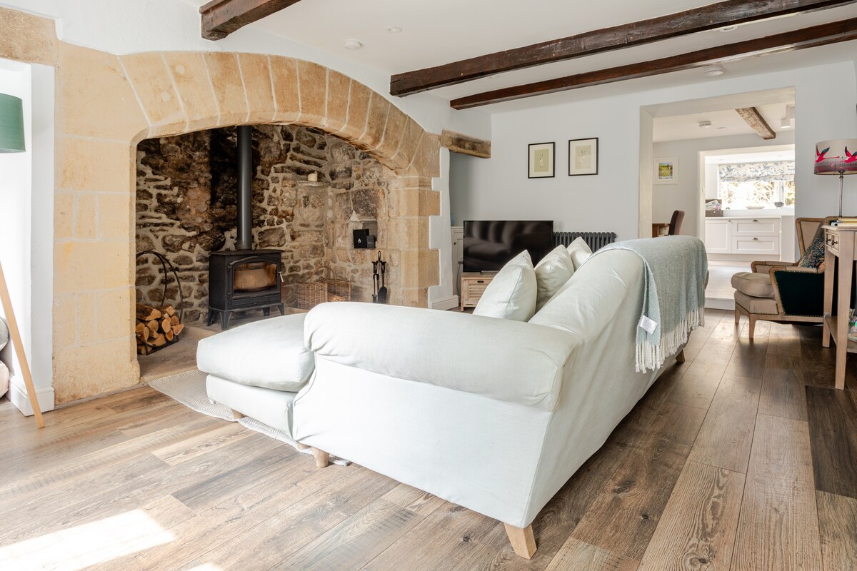 Independence in your own place - Hayloft is hidden away at the end of our 17th century farmhouse and is a special place to stay. Step inside to find the kitchen with heated stone floors and beams overhead. In the living room there's space to eat, full bookshelves and a wood burner for cosy winter evenings. Upstairs is a galleried bedroom with a large 5 foot king bed and a bathroom with deep free-standing bath and large walk-in shower. A retreat from it all in your own Yorkshire bolthole.