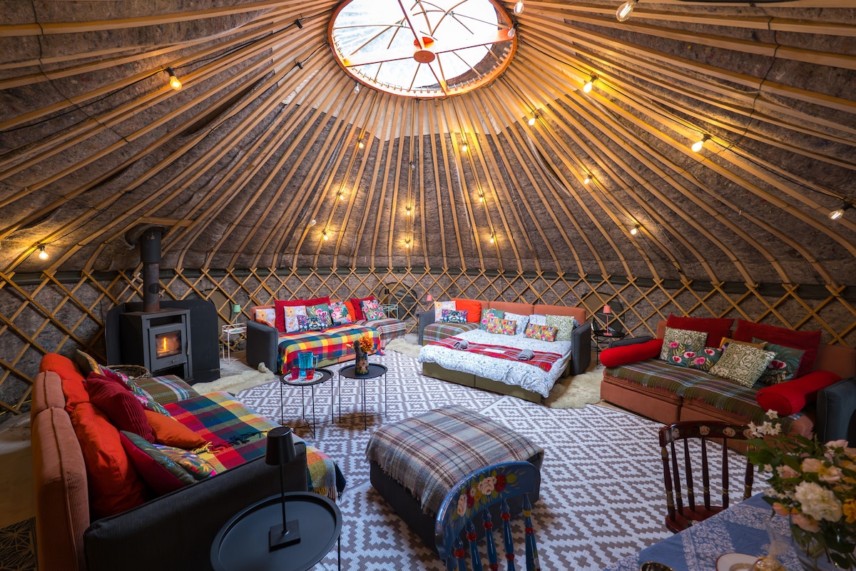 美丽的巨型豪华露营蒙古包:水疗和餐饮