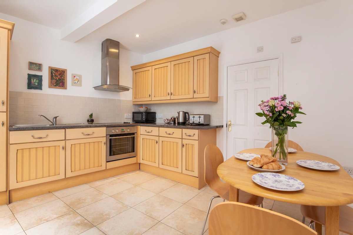 Luxurious boutique style apartment, stylish and cosy, perfect for a relaxing break or business stay. Located in the heart of Malton. Apex ceilings give this apartment the "wow" factor. This is the largest of the apartments at Chiltern Place, offering a separate dining and kitchen. Double aspect, double bedroom & luxury en-suite bathroom. Dining room leads to the south facing, private roof top balcony. Private parking on the property & secure storage for 2 bikes.