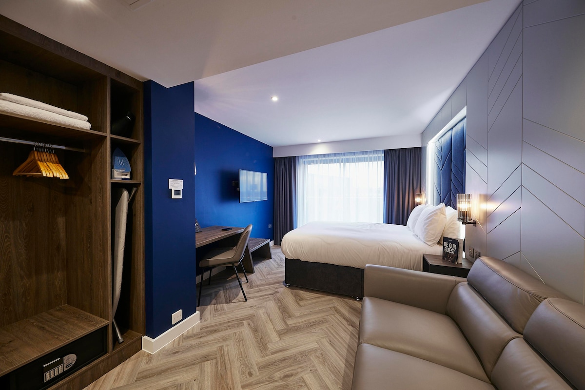 The Smart Studio at Roomzzz Aparthotel York offers a compact and modern space, ideal for short stays. Measuring approximately 22 square meters, it features a comfortable king-size bed, a sleek en-suite bathroom, a fully equipped kitchenette, and a practical workspace. This well-designed studio provides everything you need for a convenient and comfortable stay.
