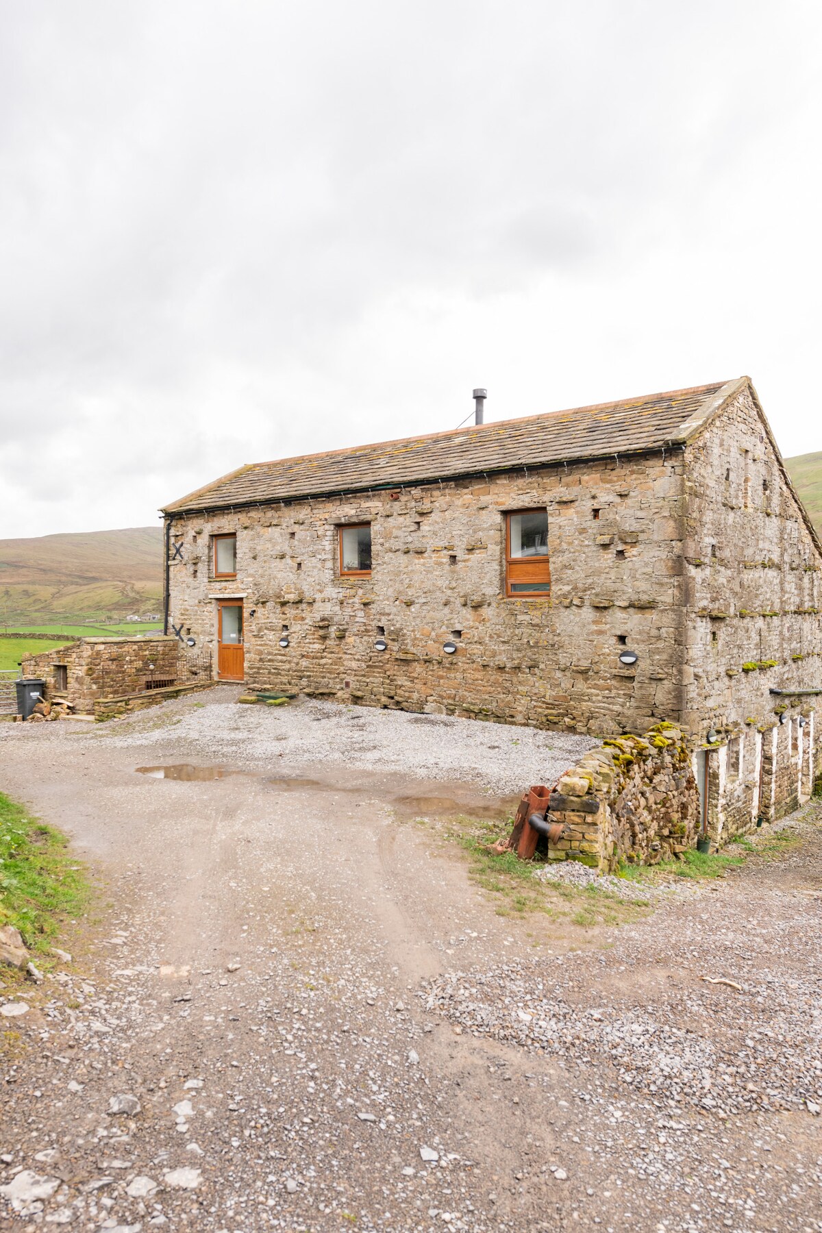 Great for families and get togethers. Tranquil retreat in James Herriot country, set in 9 acres of hay meadow with grazing horses and sheep. Wild swim in its magical woodland beck or swing your legs from the bridge . Lose yourself in nature, or just enjoy the majestic fell views from your room. Fully equipped farmhouse style kitchen adjoining hall. UFH. Radiators up. Fourposter king bed with ensuite bathroom. Further bedroom adjoining. King ensuite bedroom with kitchenette (wheelchair friendly)