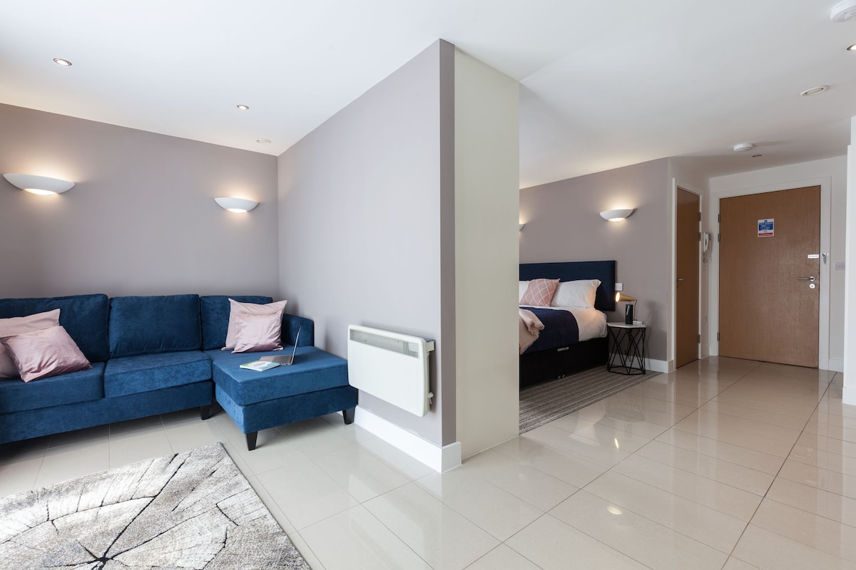 Self contained Studio in great locality. Free parking & short 10/15min pedestrianised riverside walk to City. Recently refurbished to a high standard. Light spacious & airy. New kitchen, new bathroom, recently decorated throughout. Lovely bay window with comfortable sitting area, feature fireplace. King sized sofa bed along with neat and functional kitchen and bathroom with all utilities. Free Wi-Fi . Enjoy a clean and safe stay.