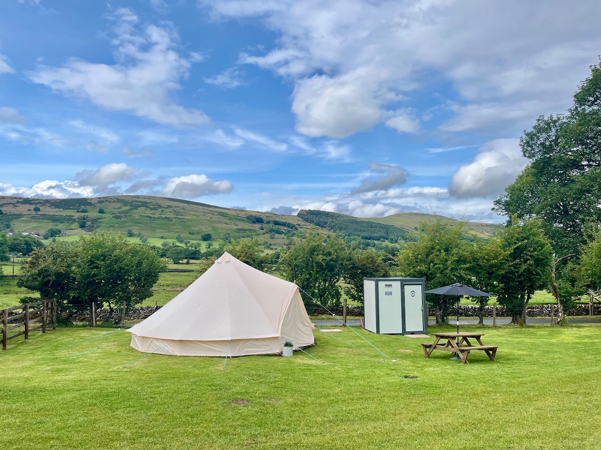 Reconnect with nature at this unforgettable escape. Two glamping tents in their own paddock on a farm near Ripon. The tents are equipped with a double bed and two roll out singles. Each tent has outdoor seating and a gas camping stove. Hot shower, kitchen trailer and toilets on site. A quiet and beautiful location to relax and watch the wildlife. Bedding is included. TOWELS ARE NOT SUPPLIED THIS BOOKING IS FOR ONE TENT BUT BOTH CAN BE BOOKED FOR TOTALLY EXCLUSIVE USE OF THE SITE