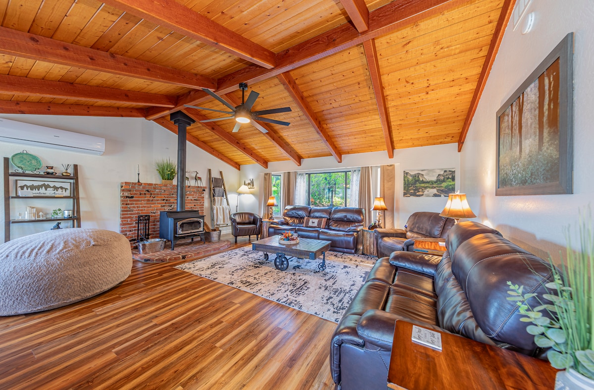 Escape to the hilltops with the Aivya House! Immerse yourself in nature and enjoy breathtaking views from the comfort of this mid-century modern/farmhouse getaway. Relax and unwind in the outdoor seating areas, taking in the serene surroundings and spectacular sunset views. Located just 25 miles from Yosemite's South Gate and minutes from Bass Lake, Oakhurst, and Mariposa, this cozy retreat provides easy access to nature and nearby attractions. Book your stay today for a memorable getaway.