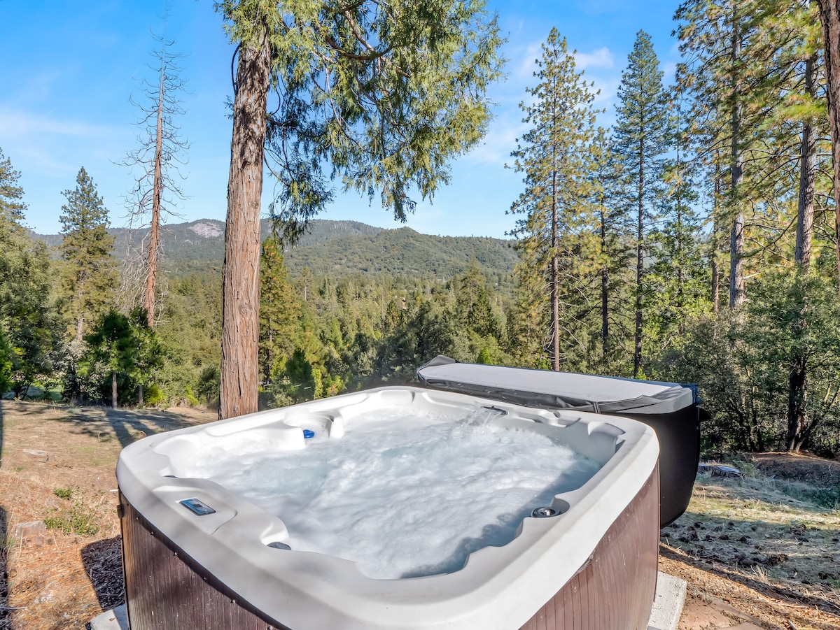 Enter into a timeless cabin in the woods! Marvel at the awe-inspiring vistas of the Yosemite Mountain range from your private sanctuary! This recently renovated home features mountain-cut granite countertops, updated flooring, lighting & furnishings, offering a fresh and inviting ambiance! - Newly set up HOTTUB -Garage/Game Room - Outdoor dining and lounging - 65" and 40" TV - 1 KING, 1 Queen, 2-Twins, 1 Futon - Excellent location to enter both Yosemite Entrances. - 60mbps Starlink Internet