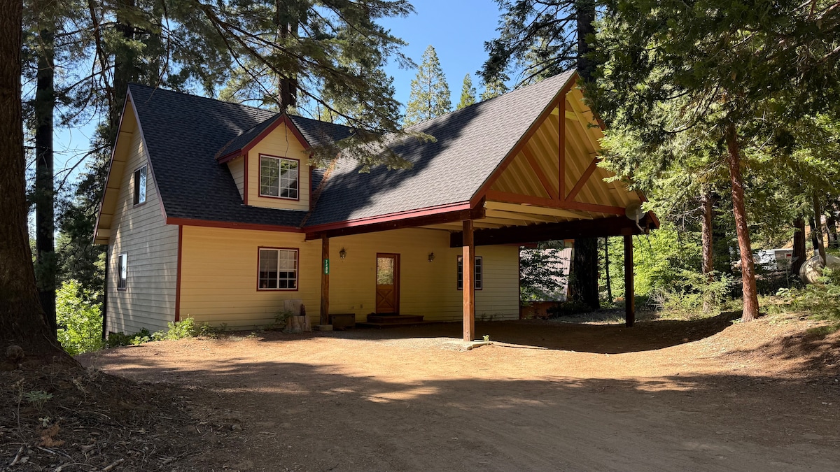 NO CAR RESERVATION NEEDED!!Stay inside the gates of Yosemite. Starlink is available but connectivity can be SLOW at times. The night sky is amazing. BBQ on the deck and take in breathtaking sunsets on the edge of the forest. It comfortably sleeps up to 10 people for an extra fee with 3 BR,2 BA, a game room and a large living room. ONE NON-SHEDDING PET ALLOWED FOR A FEE. INCLUDES GARAGE & AC, ONE OF THE FEW HOMES WITH THIS AMENITY. Fireplace is not available due to potential fire danger zone.