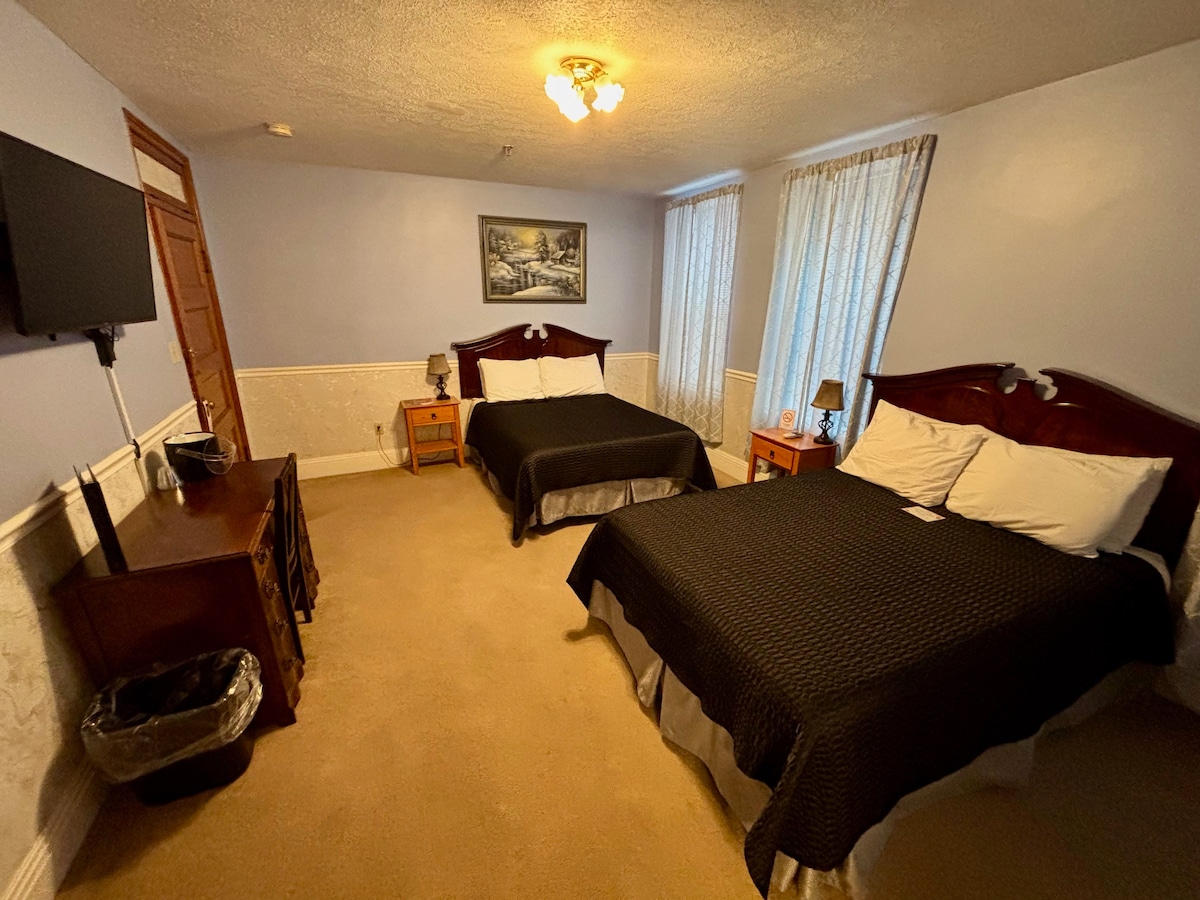This is a large room with king bed, spacious bath with walk in shower, and private in room hot tub. This room comes with free WiFi and a refrigerator and microwave. We have convenient on site parking and are located right on Rt 51 for an easy trip into Pittsburgh for sporting events, shows and dining out. We have a staffed front desk 24/7 to help with any thing you might need. This room does have a flight of steps from the parking lot to the private entrance.
