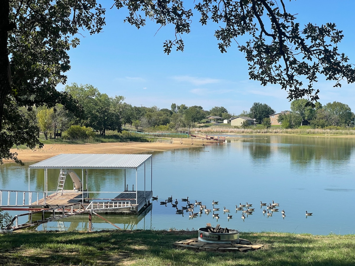 Unwind and unplug while living the dream at this serene waterfront getaway with breathtaking views. Enjoy spectacular sunrises, watching hummingbirds, kayaking, canoeing, fishing off dock (bring worms and fishing license), roasting s'mores, grilling, hiking, and the brightest stars in Texas! Bring your boat & tie up to our dock. Lots of space to park your trailer. Pet friendly to non-aggressive, house-trained dogs up to 25# with a pet fee. Friendly dogs and cats roam the unfenced area.