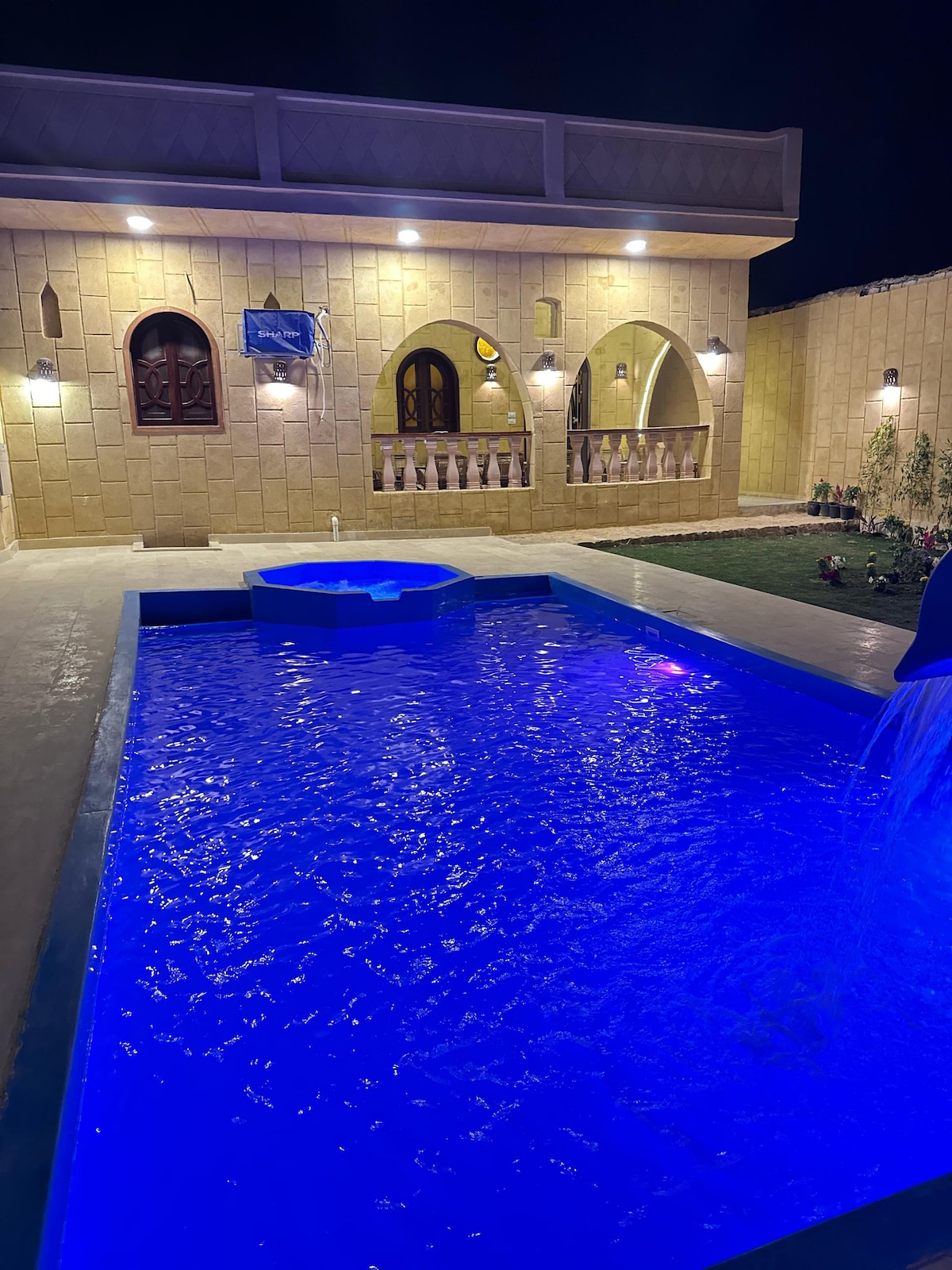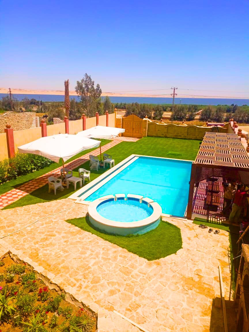 Country House located in Tunis Village in Fayoum, in front of Qaroun Lake with view directly to the lake. It has - 4 bedrooms: *2 in first floor (1 rooms with twin beds,1 with queen bed) *2 in second floor (1 rooms with twin beds,1 with queen bed) -Kitchen with all tools ex (Bowls, chopsticks, plates, cups, Oven, Refrigerator, etc) -3 bathrooms. -Private pool . -Private garden with large out door area.