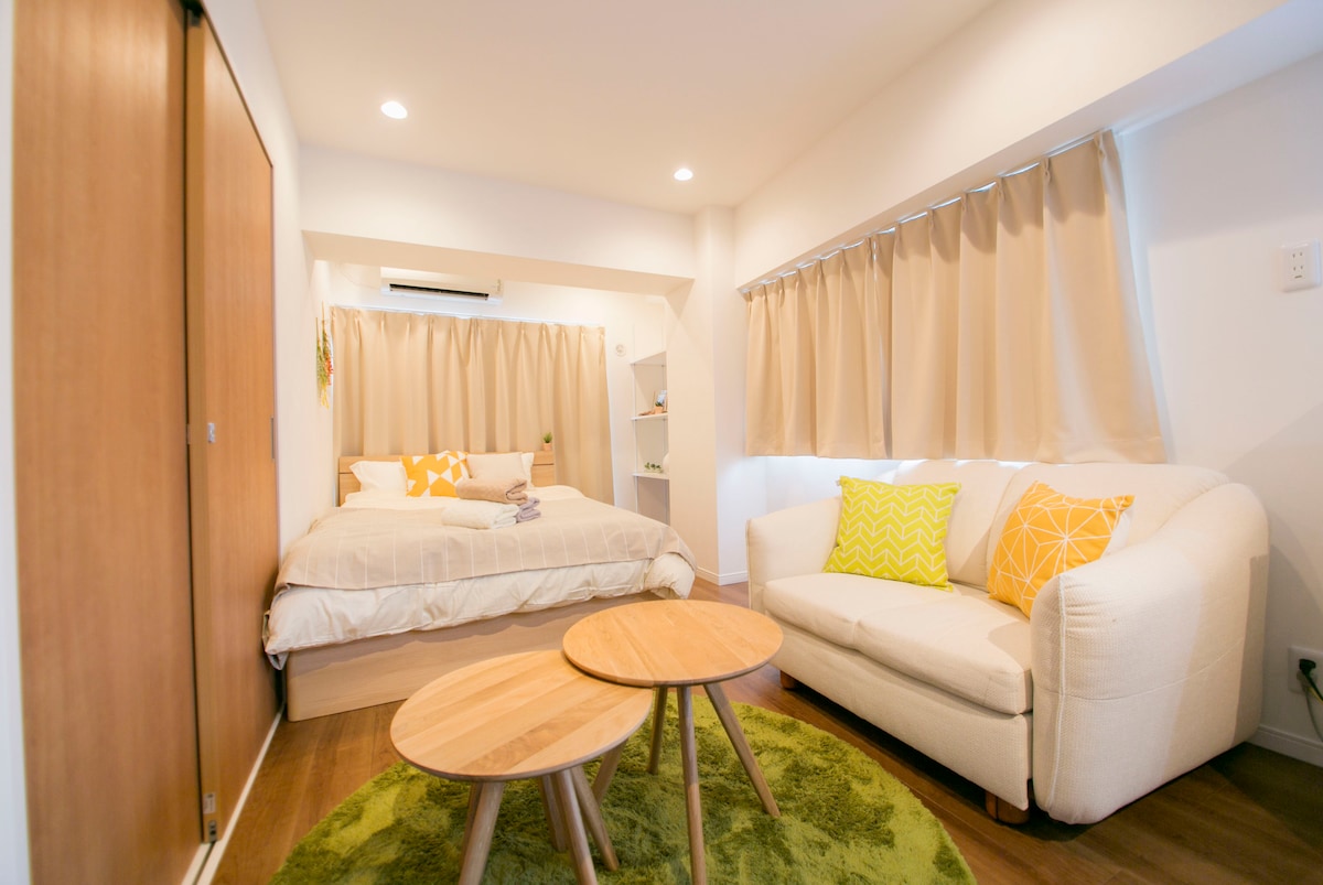步行7分钟即可抵达涩谷站|双人床和沙发床|