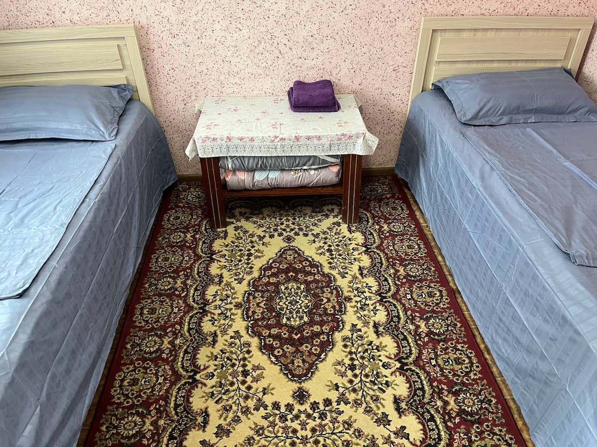 Спокойное жилье со всеми удобствами для расслабленного семейного отдыха.Есть гидромассажная небольшая ванна. Уютный гостевой домик на территории общего участка экологически чистом районе со своей небольшой речкой и зоной для отдыха на улице. Рядом горы.Недалеко аквапарк и центр отдыха Супара.До города 10 минут езды.Городской транспорт.Есть стоянка для авто.Прокат велосипеда,палаток и др. Услуги авто.Встреча и проводы в аэропорт по договору. На участке находится дом хозяев.