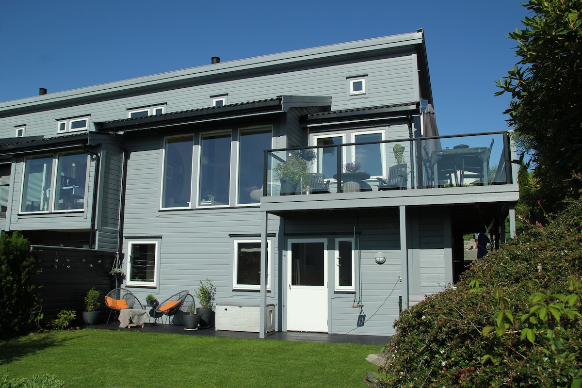 Surrounded by nature on three sides, combined with a beautiful, scenic view to the west, our modern townhouse might be your peaceful “base camp” to enjoy unique Bergen during summer! By car, you reach the city center within 10 minutes. By a 7 minute walk, you can ride by bus to town in 20 minutes. Bergen is the gateway to the unique fiords, and you will be able to access these gems from our location. We also have an amazing world heritage site here: "Bryggen". NB: book minimum 2 nights!
