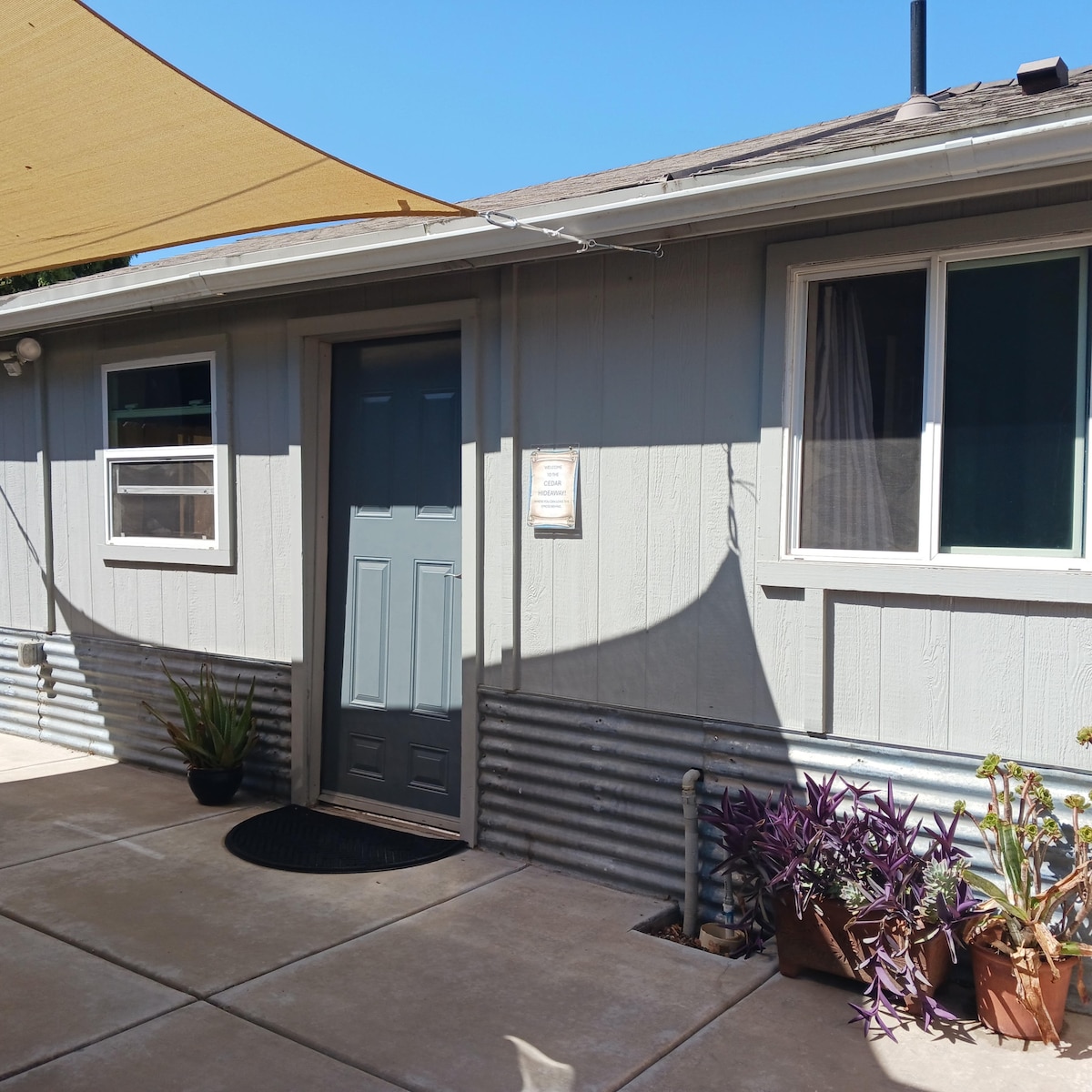 This mostly remodeled open floor plan 3 bed 1 bath unit has 3 Queen beds 1 queen hideabed and 1 twin size hideabed. This is the front unit (the larger of the two). This unit shares the laundry area in the garage, outdoor spaces to include the pool, and lounge areas. The pool is not heated, but is open for use year round. The outdoor furniture is not guaranteed to be available for use during the rain and windy season due to no covered areas outdoors. Or check out airbnb.com/h/sharalee