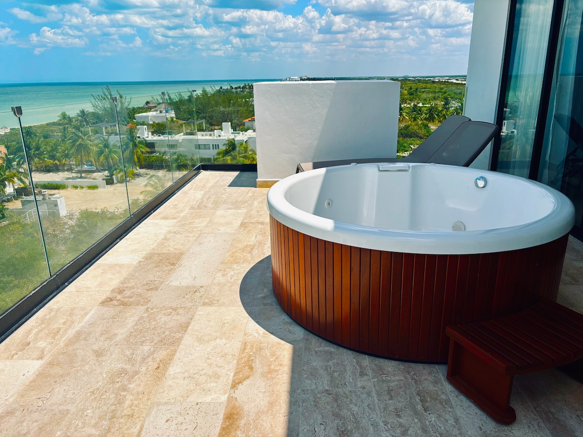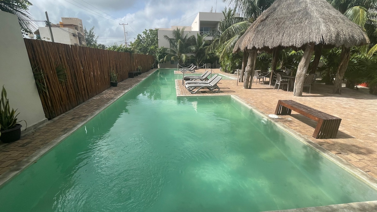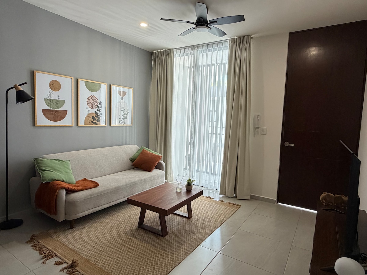 Este nuevo lugar esta cerca de todo lo imprescindible, un departamento con mucho estilo y decoracion actual, decorada por un profesional en el ramo, consta de una habitacion, una cama Queen, un sofa, cocina y tina exterior de aguas quietas y agua fria,( REPITO EN LA TINA SOLO HAY AGUA FRIA) Estamos ubicados en la parte norte de la ciudad y de plaza altabrisa, la isla y el hospital Star medica y a 10 minutos del paseo de montejo y 15 minutos del centro.