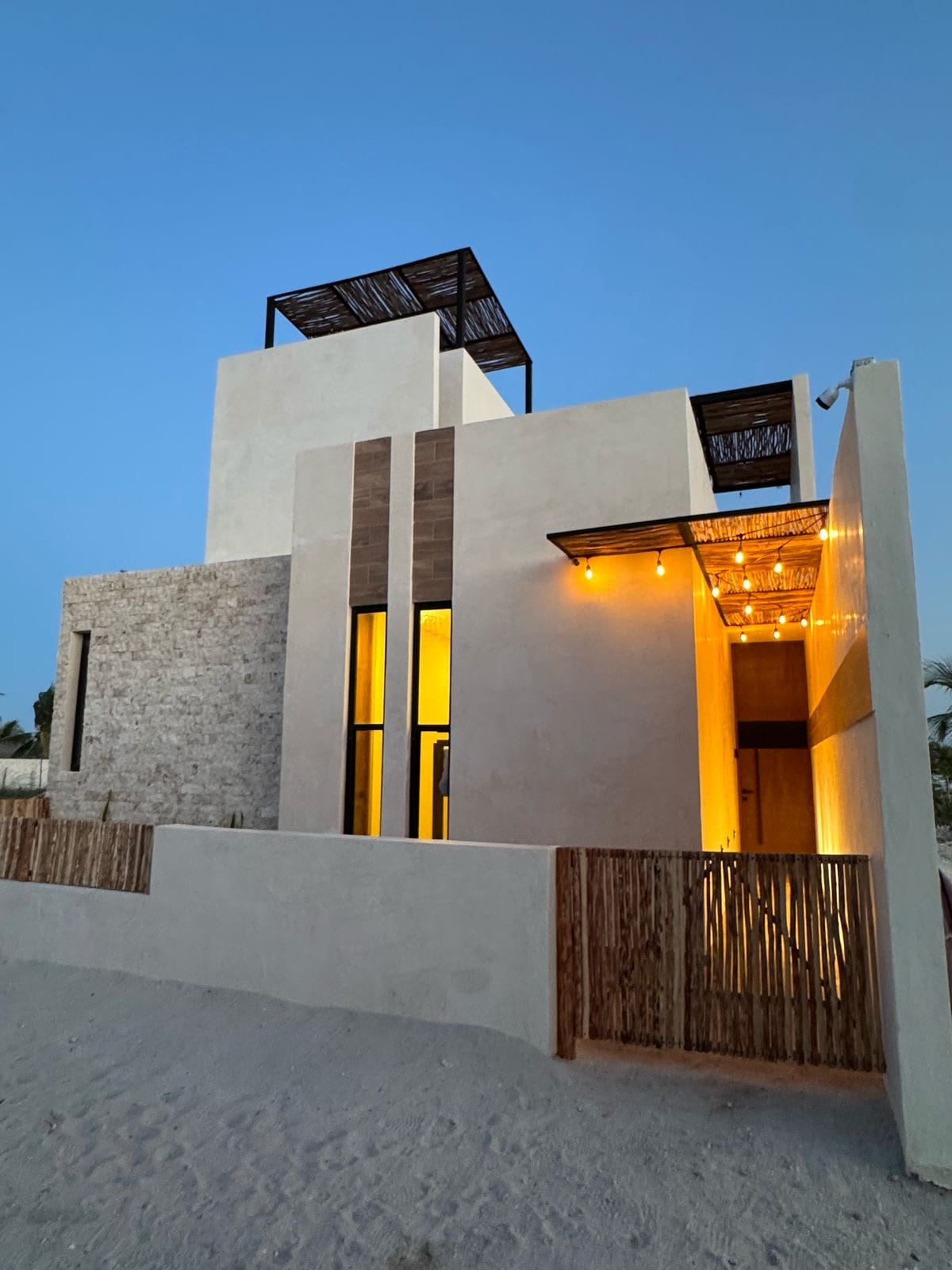 Casa estilo minimalista a la orilla de la playa, tiene tres habitaciones equipadas con AA, dos baños completos con agua fría y caliente; cocina, estancia con aire acondicionado y una piscina con vista al mar. Podrás disfrutar de la tranquilidad de este bello puerto de Dzilam de Bravo. La casa está situada a tan solo 500 metros del puerto. En el lugar podrás encontrar todos los servicios, pesca, paseos en lancha, deliciosa comida en diferentes restaurantes, tiendas, farmacias, iglesias, etc.