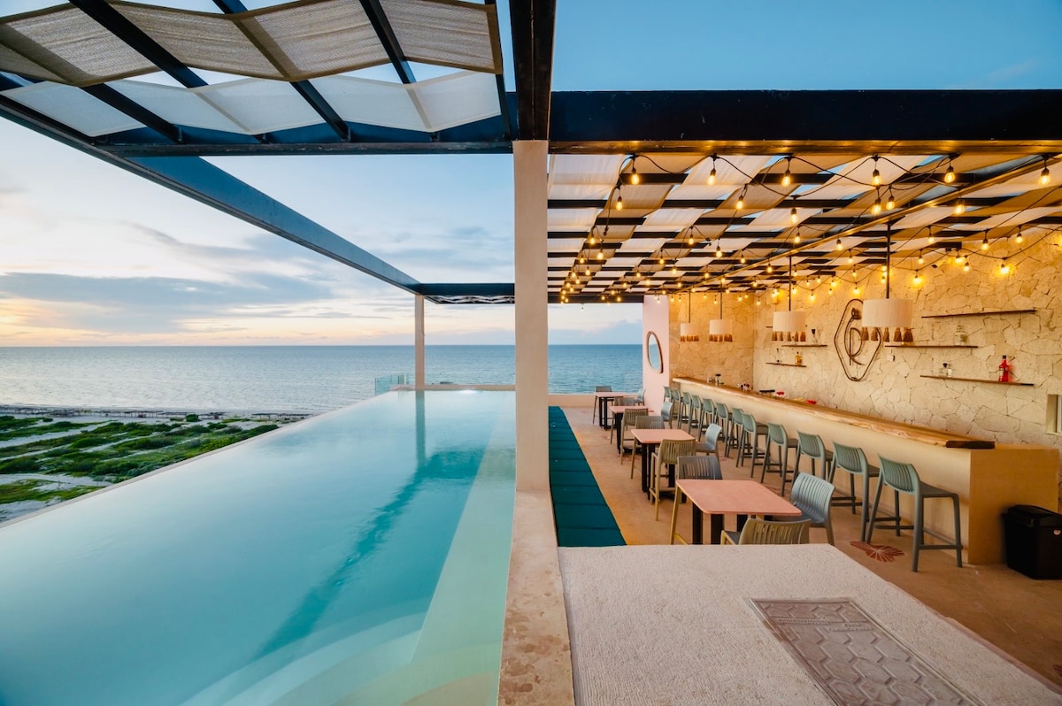 Bienvenidos a @casaalmea, un refugio moderno y acogedor en el corazón de Sisal, Yucatán. Esta villa de 3 recámaras y 3,5 baños ofrece vistas panorámicas al mar, una piscina privada, BBQ, rooftop , patio trasero con jardin y fogata , acceso directo a la playa ( 3 minutos ). Ideal para familias, grupos de amigos o parejas que buscan relajarse y disfrutar de la naturaleza. A solo unos pasos de restaurantes locales y actividades acuáticas. ¡Tu paraíso privado te espera!" Reconecta con tu bienestar