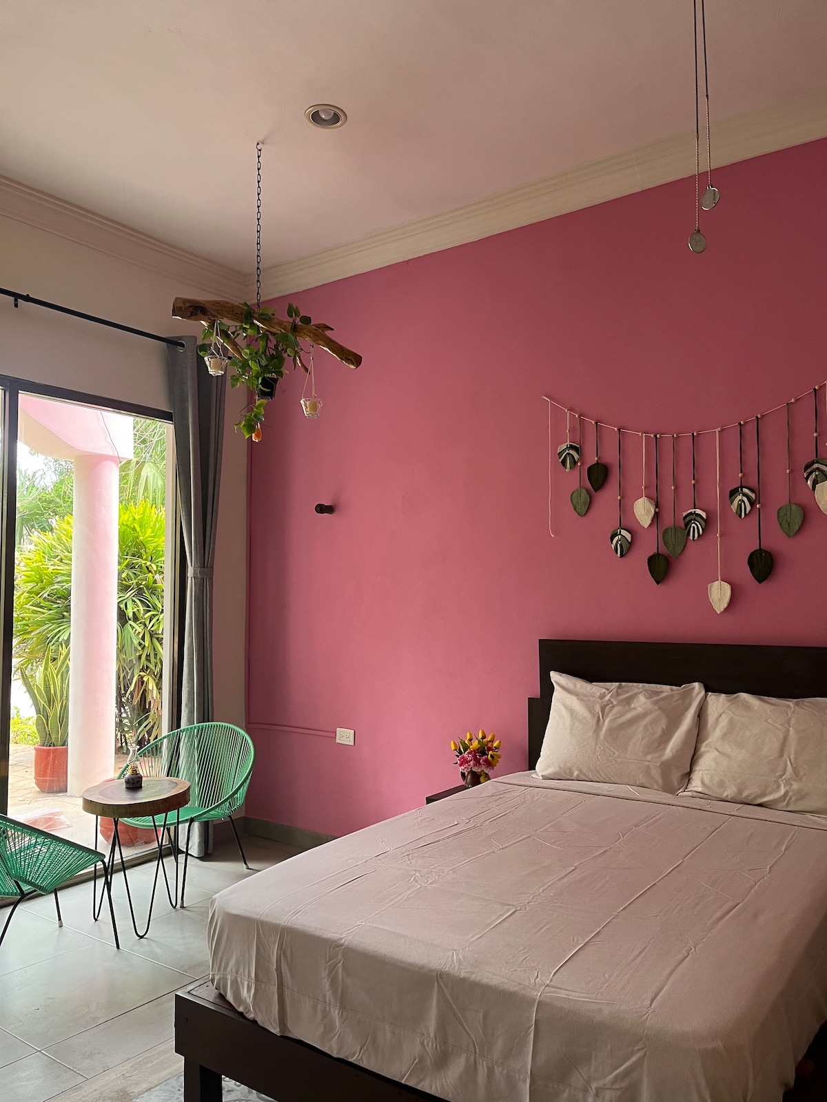 Lovely spacious room on ground floor with luxurious twin beds , imported sheets ,duvets. Very large bathroom with shower. This room opens onto a lush interior patio, has 18ft ceilings, hand painted walls, antique furniture and handmade pasta floors. The rate includes a gourmet breakfast , free wifi, ceiling fans, air conditioner and free mini bar that has purfied water, beer and refreshments. There is a shared plunge pool. Every night there is a free tequila tasting at sunset on the roof!