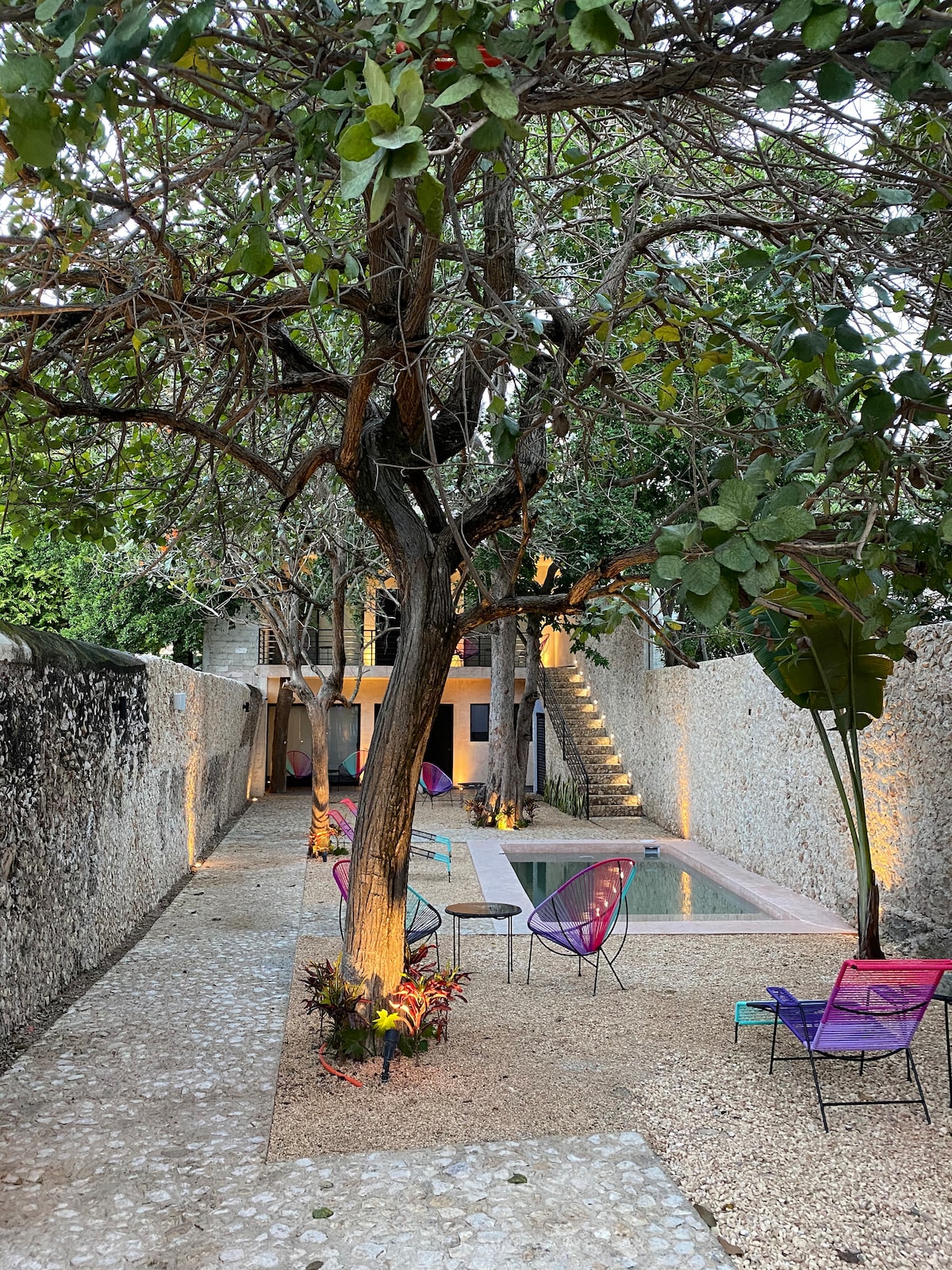 Private suite in a peaceful hidden oasis, just a few blocks from Plaza Grande in Mérida Centro. Enjoy a quiet, lush courtyard with pool, surrounded by nature…yet right in the heart of the city. Perfect for relaxing, recharging, and experiencing Mérida like a local. Book now and secure your stay.