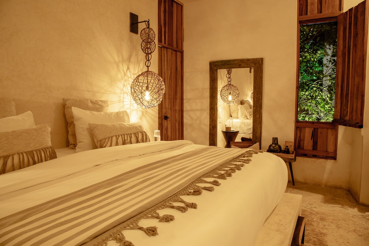 Esta asombrosa Máster Suite ofrece un refugio majestuoso, con características como una bañera junto a la cama king size, ducha al aire libre y una agradable terraza con hamaca perfecta para relajarse a la sombra de los árboles. Ya sea que busques un retiro pacífico o un entorno inspirador, Japoneza Retreat ofrece una experiencia única diseñada para rejuvenecer tu espíritu.