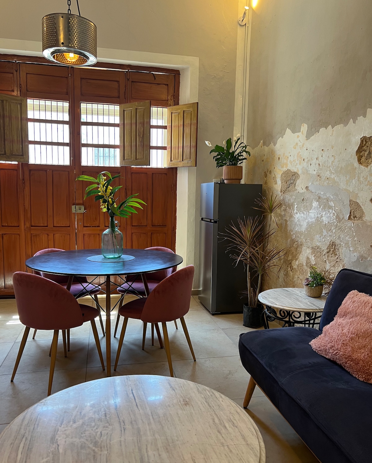 Casa Serena, located in the heart of the city, is a spacious and warm space, with sober tones that provide a visual rest. Mango wood, macrame, natural fibers and original pieces are the perfect mix for a pleasant stay. Two inner courtyards display its green splendor, with palms and magnificent "tiger claws". Walking in the surroundings you can enjoy an afternoon full of color, the evening breeze and magnificent sunsets.