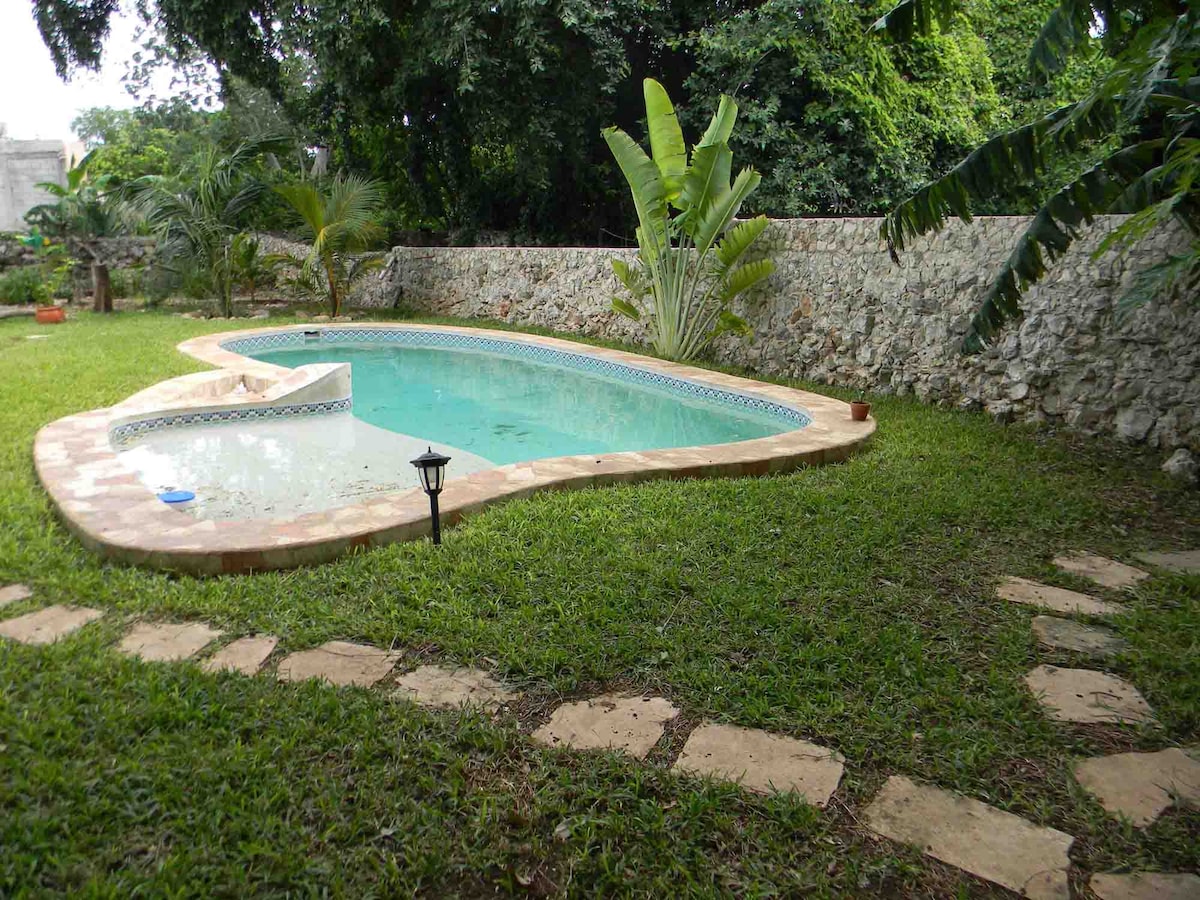 Visita la hermosa y pacifica Mérida, en una privada a 20 minutos del Aeropuerto, 21 minutos del centro histórico, y a 29 minutos de puerto progreso, amplia y con suficiente espacio para toda la familia ( de hasta 9 personas), en un lugar seguro, con estacionamiento gratuito, zonas verdes, oxxo a dos cuadras, la farmacia a 2 cuadras, donosusa a 4 cuadras, parque central a 2 cuadras, bien ubicado, en privada con vigilancia 24 horas, con parque infantil, y una gran zona para BBQ y piscina. WELCOME!