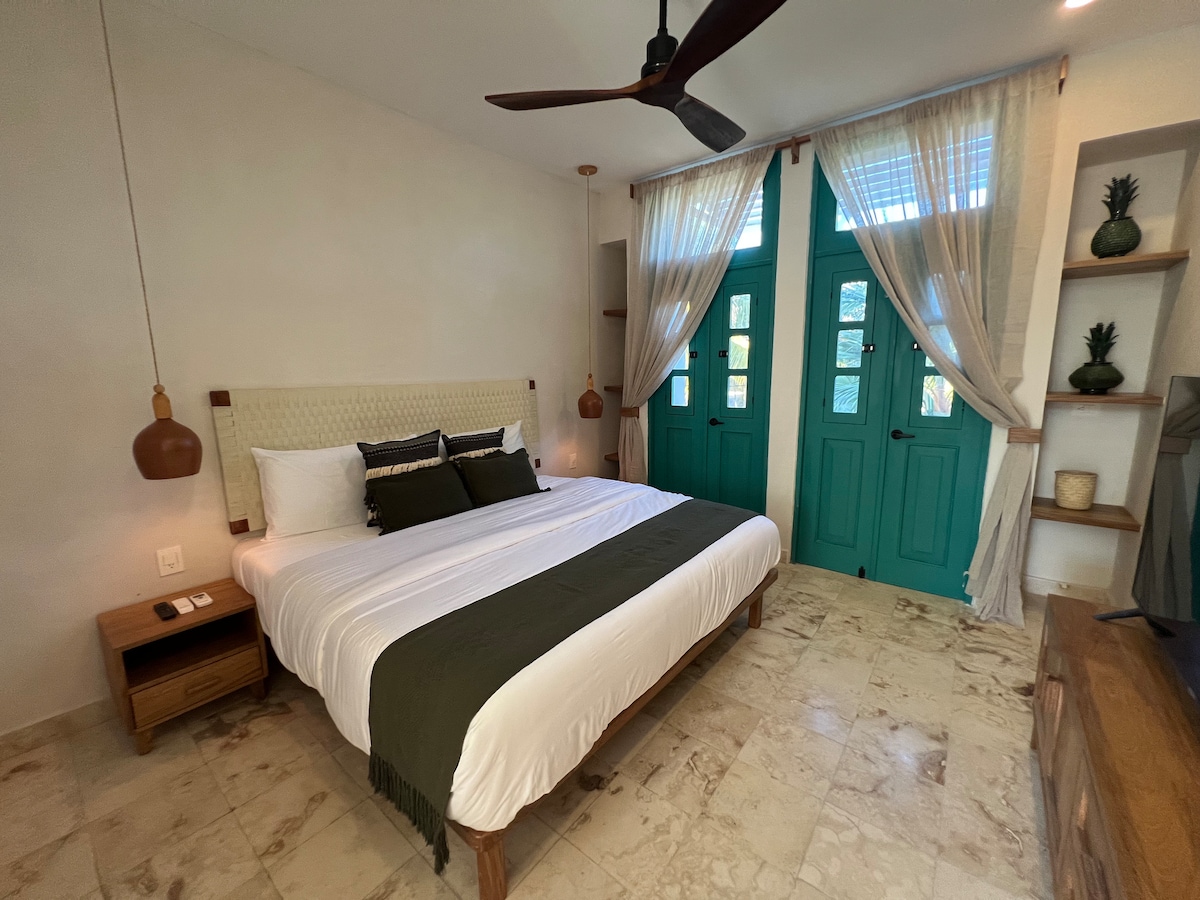 Descubre la esencia de Mérida en una casona antigua restaurada con muros de piedra y estilo boho-natural. Relájate en tu jardín privado con piscina exclusiva, disfruta de una cama matrimonial con ropa de calidad, aire acondicionado, Smart TV y Wi-Fi. Ubicado en la emblemática Calle 60, cerca del Paseo de Montejo y cafés locales. Ideal para parejas y viajeros que buscan autenticidad, historia y confort moderno.
