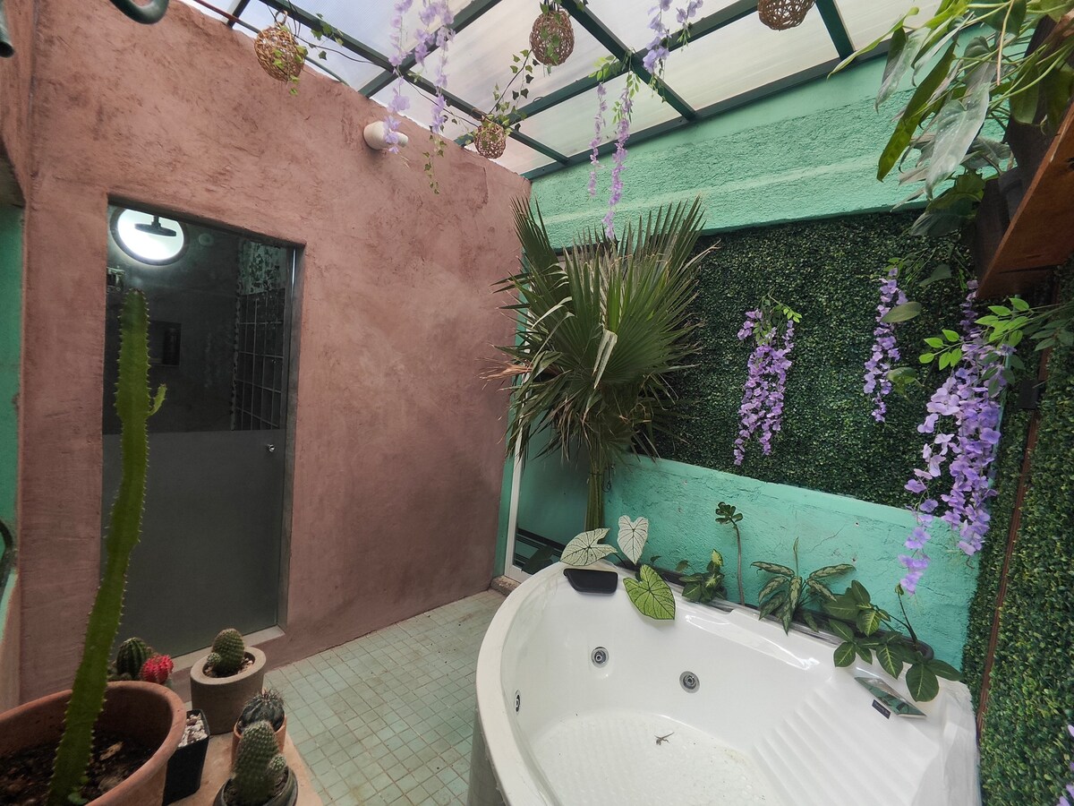 Déjate consentir en un espacio independiente, cómodo y seguro en el jardín de nuestra casa. Disfruta el cantar de las aves, un buen libro o nuestra alberca (compartida). Nuestra ubicación es ideal ya que nos encontramos a 900 metros del malecón y a 1.3 km del centro histórico. Todavía mejor si vienes con la intención de ahorrar $, ayuda mucho que a unos pasos encontrarás dos supermercados. Si traes auto, puede quedarse dentro de la propiedad o si deseas puedes tomar el autobús a solo 2 cuadras.