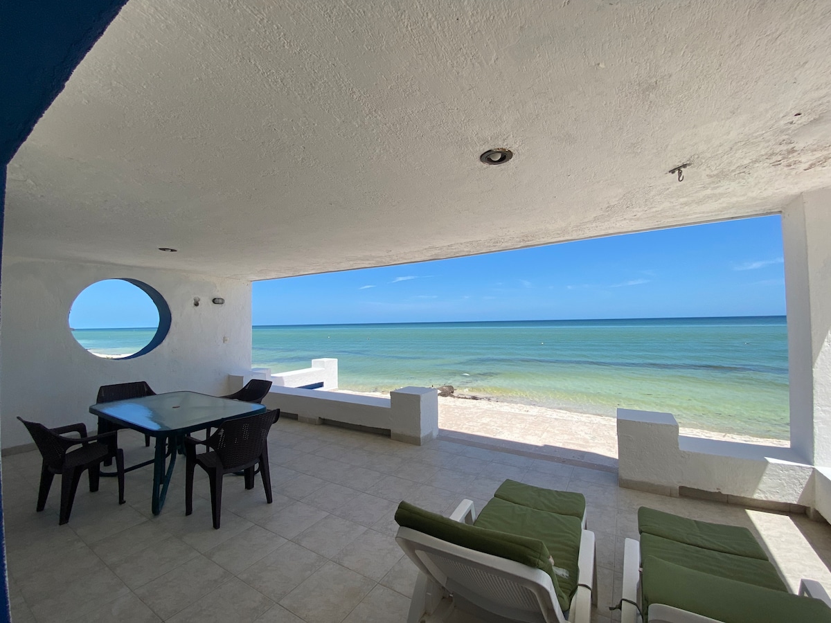 Ideal for couples. Beach-front house in Sisal, Yucatan. Sisal is a typical fishing village with around 3,000 inhabitants, a nice place to escape from the city and relax. Located 55km from Merida, 1hr driving.