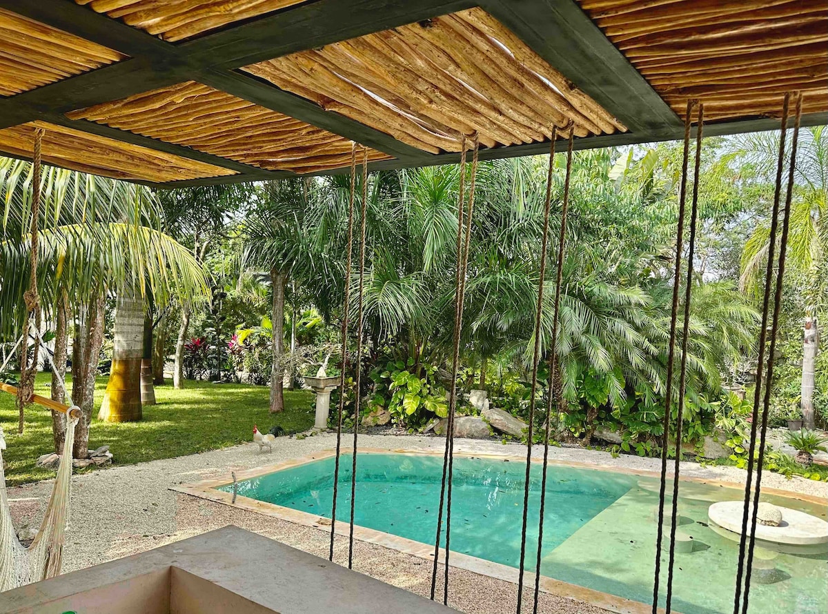 This cozy treehouse is perfect for nature lovers, adventurers, and anyone seeking a unique experience. Located at the edge of the Mayan jungle, you'll enjoy a private, eco-friendly stay in a treehouse dome. It’s the best of both worlds, immersed in nature yet close to town! A spacious tree house dome will give you all comfort of Glamping: King size bed, private bathroom & HIGH speed FAN. Best of all: cenotes are a minutes walk away.