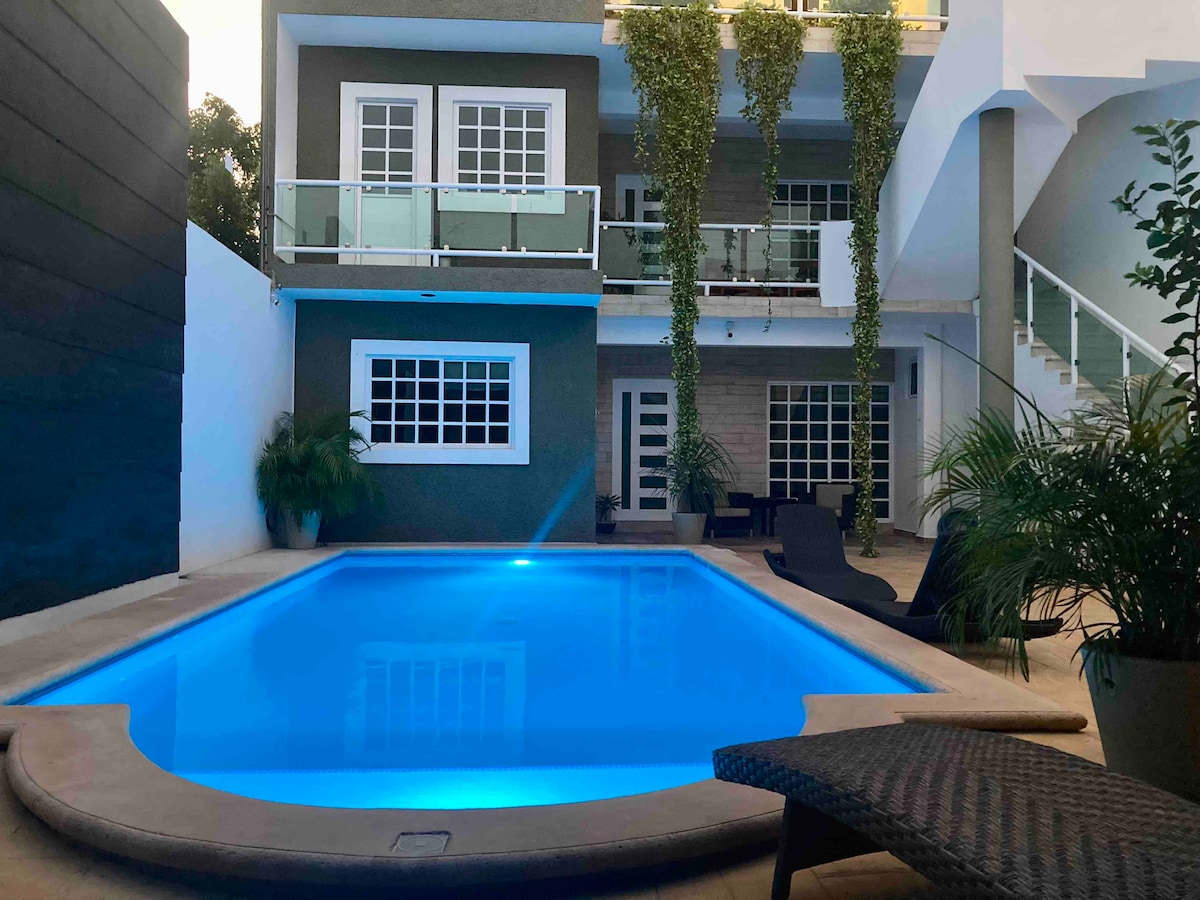 Come and enjoy a quiet and a nice place, with pool, terrace, lounge chairs and hammock. In the kitchen utensils to cook. In the bathroom we put towels, shampoo, body wash 🧴 It is close to Chedraui, you can walk there 5-8 minutes. Is one block from the Main Street Juarez Avenue, were you can take a taxi or a van. In Juarez avenue are few small restaurants, laundry, groceries store Oxxo. It is 3 blocks from hiway where you can take the vans to Tulum or Cancún. 20 minutos walking to the beach.