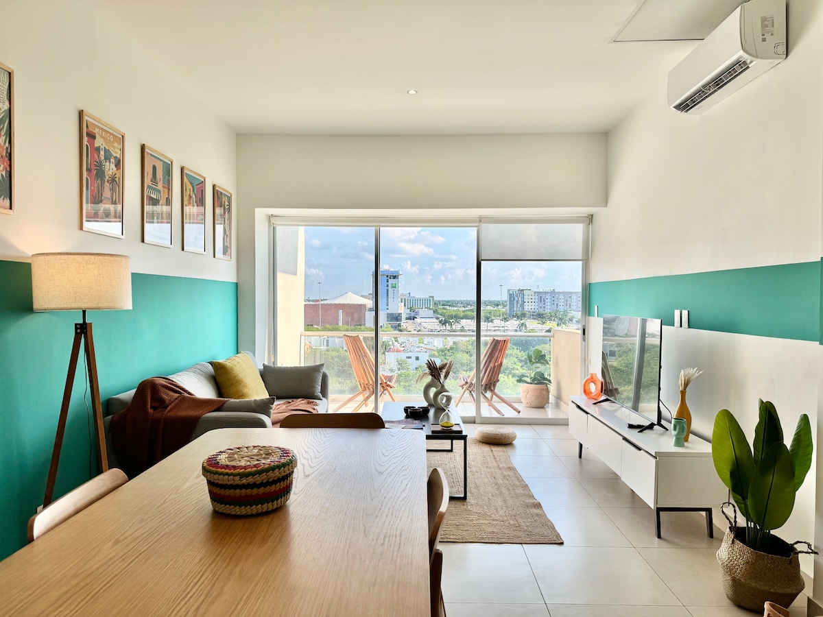 HERMOSO DEPARTAMENTO! Nuevo, moderno y de buen gusto. Excelente ubicación, a escasos mts de plaza Galerías Mérida y The Harbor, donde actualmente se encuentra la Secretaría de Relaciones Exteriores y últimamente empezó a operar el Consulado. Ubicado en el 9no. piso de la Torre Oceana, 1 recamara, 1.5 baños, sala comedor y cocina, terraza donde podrá apreciar un hermoso atardecer, aires acondicionados, utensilios de cocina. Wifi, Cable, Smart TV, todo lo esencial para una placentera estancia!.