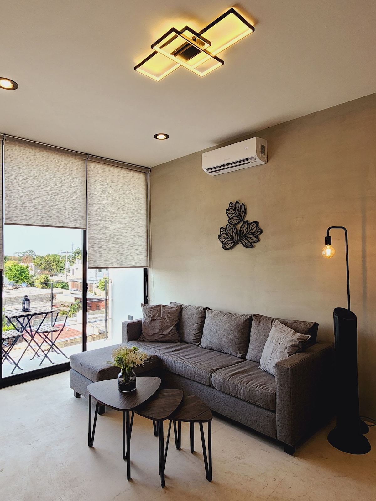 Beautiful apartment with an unbeatable location just one block from famous García Lavín Ave in the north of Mérida, where you will enjoy restaurants, the best nightlife area, gyms, supermarkets, shopping centers, and more. At Makou Apartments (Estudio R27A), you will experience a completely cozy and fresh atmosphere. Additionally, experience living in a building with unique design and amenities including a serviced bar, swimming pool, barbecue area, rooftop, and more. Equipped for long stays.
