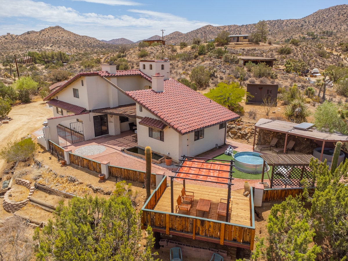 5 acres of fun! Enjoy A/C, cowboy tub (closed for the season starting 10/1/2025), hot tub, fire pit & amazing views. Licensed Airbnb. Private 1600sf 2-bedroom house with endless Joshua Trees, Yuccas & wildlife. Gaze at panoramic views with vast mountain ranges during the day, and thousands of twinkling lights at night. King & queen beds with foam mattresses, sleeper sofa, strong A/C, & fast Wi-Fi. Full kitchen. Surrounded by nature, 5 min to town. Cook, relax or work. It's all here for you.