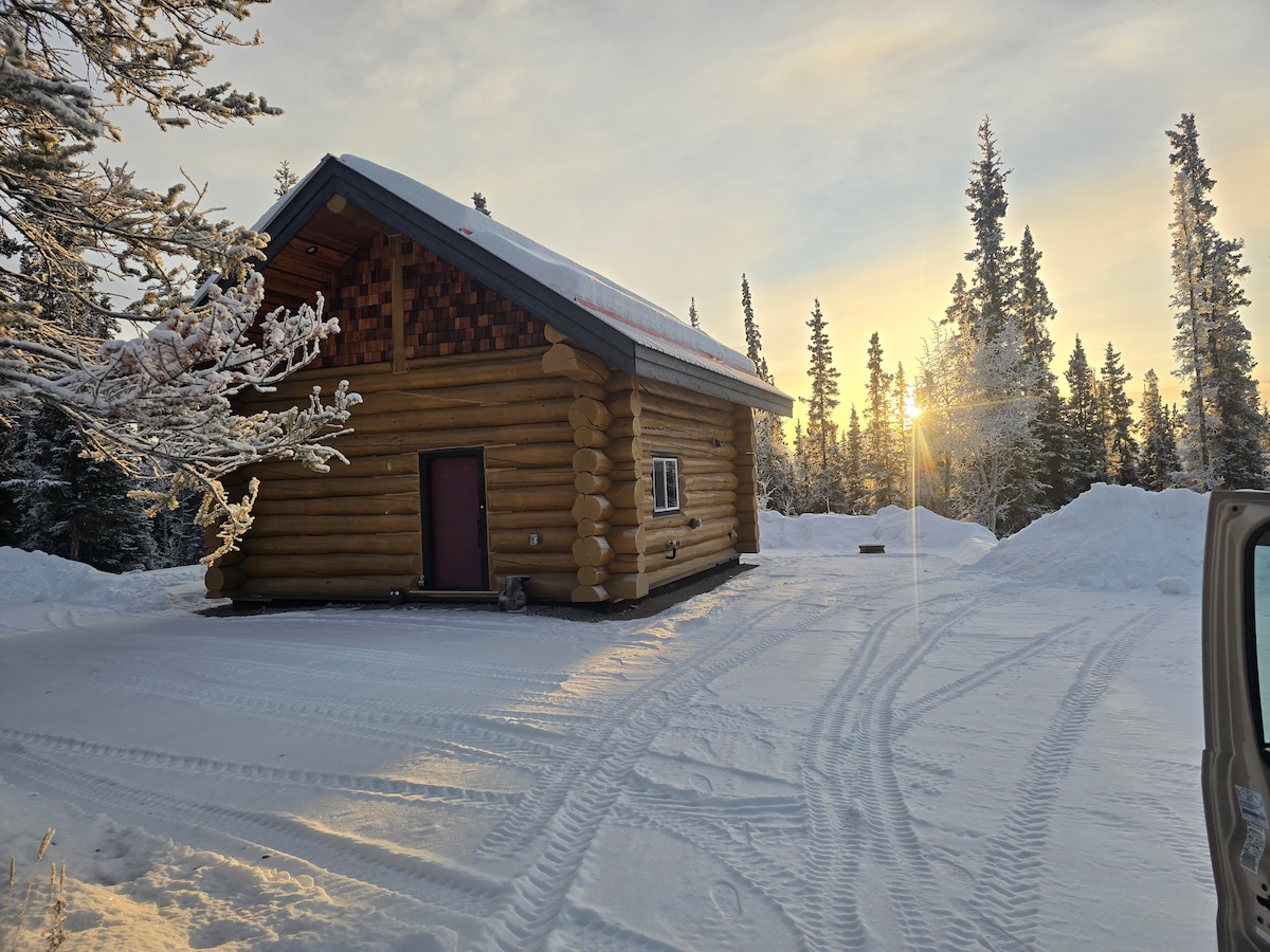 "As you enter 'The Moose, time seems to stand still. The cabin, reminiscent of a rustic magazine spread, merges seamlessly with the wild Yukon. The aroma of fresh coffee invites dawn's embrace, while plush bedding beckons nighttime tales under the Northern Lights. Snow-dusted trees paint a tranquil backdrop, and nearby, the historic Alaska and Klondike Highway murmur tales of yesteryears. With opulent comforts and rustic charm in the shared lodge bathrooms, every moment here is a story."