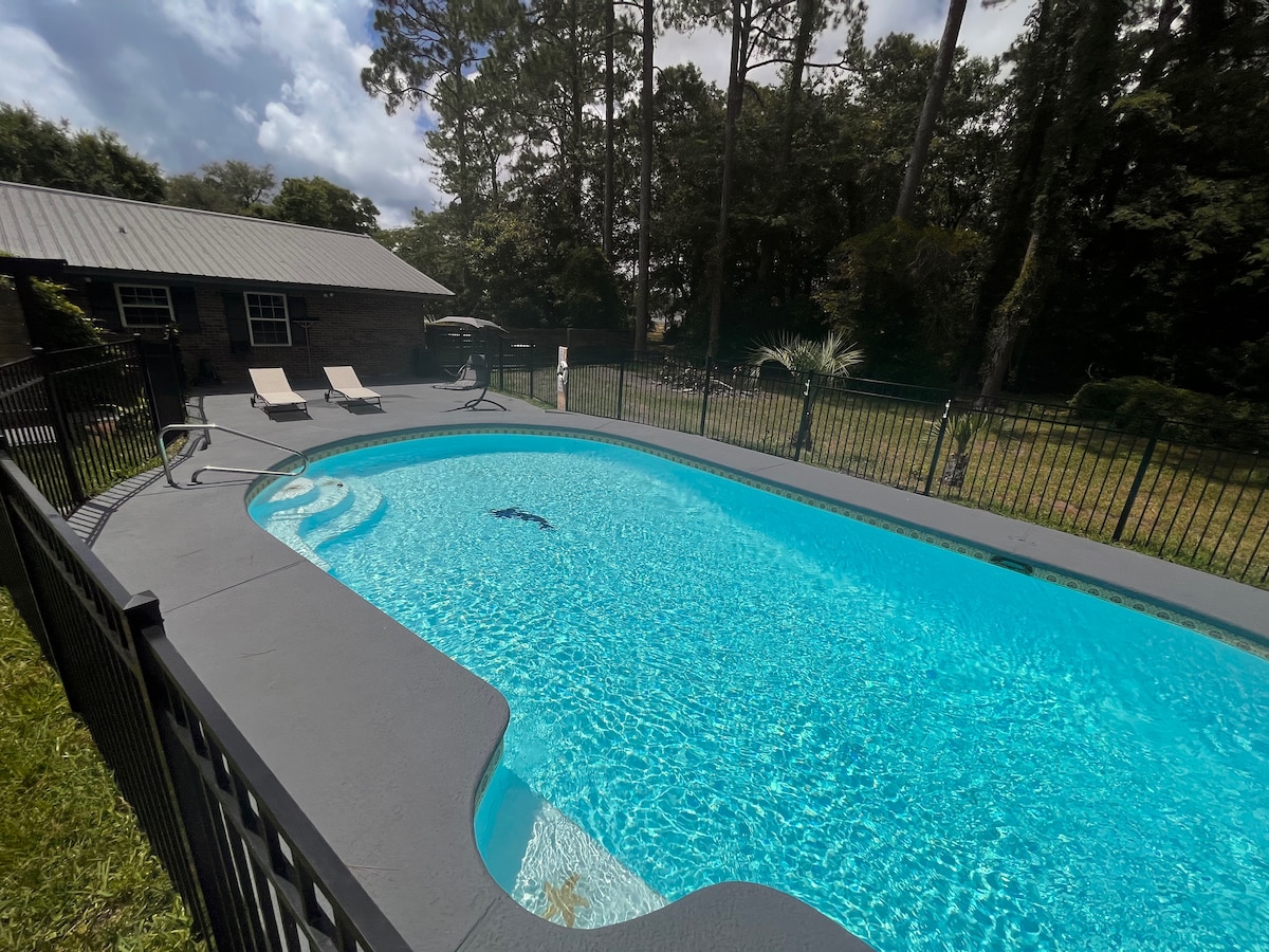 Unwind and relax in your own private guest suite with an in-ground swimming pool and tranquil enclosed patio — the perfect spot to enjoy coastal Georgia days. Located just minutes from historic downtown St. Marys, Kings Bay Navy Base, the Cumberland Island ferry, shopping, dining, and multiple boat launches, you’ll be close to everything yet tucked away in peace.