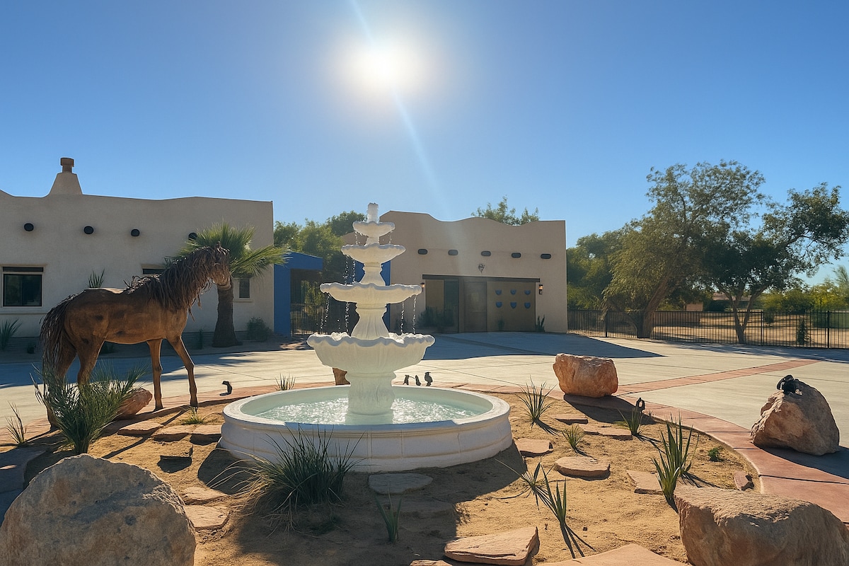 Stunning Spanish-Style Oasis in the Arizona Desert Welcome to our breathtaking Spanish-style guest house in the serene Arizona desert. This retreat features one of the city's most iconic pools and a beautiful patio for outdoor enjoyment. Fully equipped for a luxurious stay, you’ll love lounging by the pool and barbecuing.The hot tub is available for a $40 fee for two days. At Casa Santa Fe, please notify us one hour in advance to turn it on. Relax and enjoy your stay in this desert oasis!
