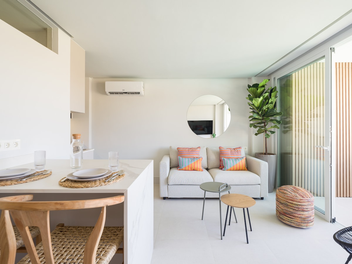 Welcome to our brand new 1-bedroom apartment on Av. De Tirajana, just 5 minutes from Yumbo. Enjoy modern comfort with a cozy bedroom, fully equipped kitchen, and stylish living area with a Smart TV. The spacious balcony is perfect for outdoor relaxation. With high-speed Wi-Fi, air conditioning, and essentials provided, you'll feel at home. Close to cafes, restaurants, and public transport, this apartment is perfect for both leisure and business travelers. We look forward to hosting you!