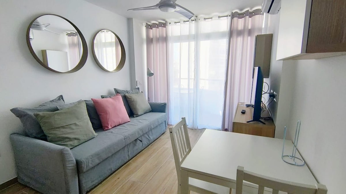 Os damos la bienvenida en el corazòn de Playa del Inglés, en un complejo de apartamentos muy bien ubicado a tan solo unos metros de la Playa de Maspalomas y a solo unos minutos de las maravillosas Dunas de Maspalomas, Nos encontramos cerca de todo tipo de servicios como restaurantes, supermercados y muchos otros. El estudio esta completamente reformado con estilo moderno y dispone de salòn, cocina independiente, baño y amplio balcòn con vistas, dispone de cama doble y sofà-cama, WIFI Incluido.