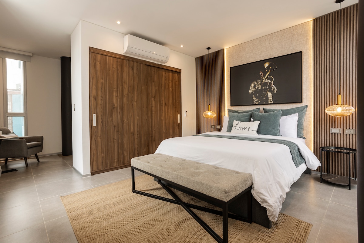 🌴 EXSTR APARTMENT • Villa del Peñon 301 This two bedroom, two bathroom unit with a balcony, is the perfect match for families, groups of friends, or digital nomads. All tabs have hot water, the bedroom has A/C, smart TV, and a queen bed. All the amenities are in place and have been designed with your comfort in mind. The El Peñon neighborhood is a very walkable area with plenty of restaurants and entertainment within minutes. Colonial San Antonio is only 3 blocks away.