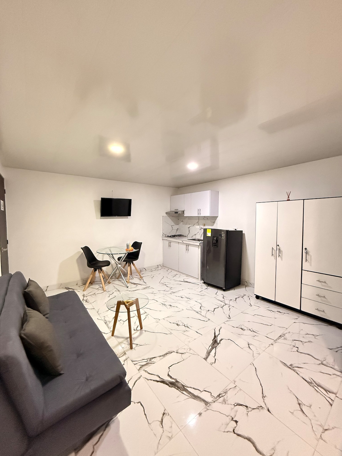 Disfruta de la comodidad y tranquilidad en este acogedor apartaestudio ubicado estratégicamente a 20 minutos del aeropuerto y a 15 minutos del terminal de transporte terrestre, lo que lo convierte en un punto de partida perfecto para explorar la ciudad. A pocos pasos encontrarás supermercados, gimnasios y una agradable zona gastronómica. Este espacio cuenta con cama doble, nevera, aire acondicionado, TV, cocina equipada, clóset, baño y una hermosa vista a la montaña.
