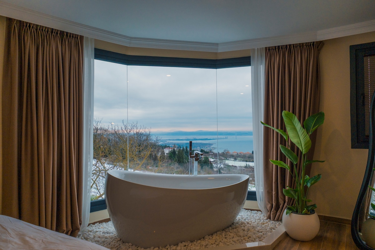 伊兹尼克海滨别墅+加热泳池+4人按摩浴缸
