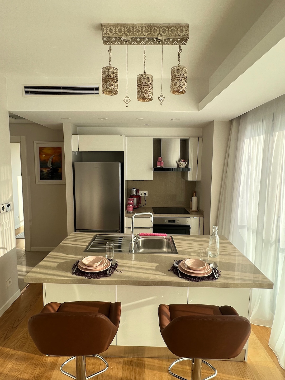 Merkezî bir konumda bulunan bu yerde kalırsanız ailece her yere yakın olacaksınız. Evimizin bütün bakımları yeni yapılmış olup resimleri yeni çekilmiştir.
