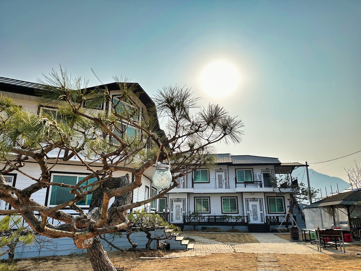 55平方米的独栋韩屋(150平方米的草坪。宽敞的地板。KTV。烧烤。篝火。煮三层肉。团体)